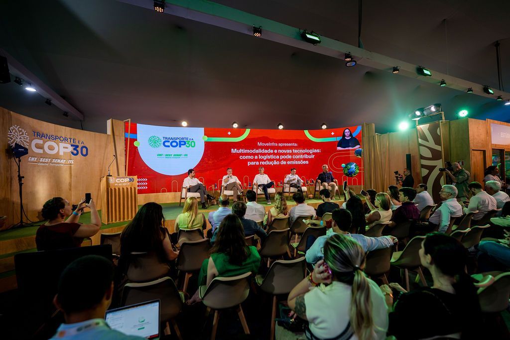 Como o uso de novas tecnologias e a multimodalidade podem contribuir para a redução de emissões no setor logístico? Para responder a essa pergunta, o MoveInfra levou à programação da Estação do Desenvolvimento na COP30, um time de executivos de nossas associadas para mostrar como inovação e inteligência operacional caminham juntos à sustentabilidade nesse processo de transição climática. Para abrir o debate, o vice-presidente Corporativo da EcoRodovias, Rodrigo Salles, lembrou o avanço das discussões em torno da responsabilidade empresarial com a preservação do meio ambiente. “Possivelmente alguns atrás, esse tema sequer seria associado à sustentabilidade. Isso seria muito mais eficiência operacional. Mas o que ficou evidente nos últimos anos é que a tecnologia e a inovação são um grande indutor de práticas sustentáveis”. Como exemplo, Salles citou o HS-WIM, sistema de pesagem de caminhões de carga em movimento. Sem a necessidade de parada nas balanças, há menos frenagens e, consequentemente, menor emissão de gases. “Quando nós desenvolvemos essa tecnologia junto a ANTT, um dos objetivos era a eficiência operacional, mas acabamos acertando em várias outras coisas”, referindo-se à redução do custo das operações, melhora na segurança viária e na fluidez do trânsito. Na avaliação do CEO da Hidrovias do Brasil, Décio Amaral, o modal hidroviário ainda é pouco explorado no Brasil, mesmo apresentando a menor pegada de carbono quando comparado a outros meios. “A hidrovia tem dois benefícios claros. Primeiro ela não requer investimento na infraestrutura, o rio já está lá dado pela natureza. E a operação é muito eficiente. O nosso super comboio de 35 barcaças, por exemplo, transporta o equivalente a 1.750 caminhões”, destacou. Décio reforçou a importância da integração entre os modais para melhor eficiência do transporte de cargas. “A estrada tem o seu papel, a ferrovia tem o seu papel, a hidrovia tem o seu papel. Não é uma concorrência de modais. É uma combinação eficiente de modais. Um planejamento integrado de logística é um diferencial competitivo”. Pelo lado ferroviário, o CEO da Rumo, Pedro Palma, destacou o papel da infraestrutura na sustentabilidade, no crescimento e na competitividade por meio da construção de uma capacidade operacional adequada ao tamanho do potencial agrícola do Brasil. “Os projetos de infraestrutura estão muito ligados com a demanda do país, com a produção de celulose, etanol e biocombustíveis, concentradas no interior. E fazer com que você chegue aos portos com eficiência, demanda um projeto ferroviário muito forte”, avaliou. A inovação também faz parte da estratégia do setor ferroviário. Palma explica que as tecnologias ferroviárias permitem a otimização do sistema de condução, no qual a Rumo utiliza inteligência artificial em 80% do seu tempo. “O sistema define qual a melhor aceleração, qual o melhor ponto de entrada e de frenagem para cada viagem realizada, considerando a condição do trecho e as cargas transportadas, garantindo a máxima eficiência no consumo energético”. E conclui: “Entre todos os nossos modais, o que a gente tem que incentivar cada vez mais é a cooperação, a transparência e a troca de melhores práticas para garantir que a gente avance realmente de forma conjunta em uma agenda de eficiência para todos”. Já o vice-presidente da Ultracargo, Helano Pereira, ressaltou os investimentos realizados pela companhia para aumentar a eficiência de suas operações. “A gente faz a interligação de São Paulo com Mato Grosso em parceria com a Rumo. Com isso, o transporte do etanol de milho, por exemplo, fica muito mais eficiente. A gente também fez investimento no corredor logístico nordeste, ligando o terminal em Palmeirante (TO) com o porto de Itaqui (MA)”, lembrou. No Terminal de Santos, outro case de sucesso, a Ultracargo transforma resíduos oleosos em tinta, que é usada no próprio terminal. “Desde que nós implementamos essa ação, a gente já conseguiu reduzir mais de 570 toneladas de resíduos oleosos. Isso é muito importante para o nosso setor”. Helano lembrou que todos os terminais da Ultracargo utilizam energia de fonte renovável e reaproveitam a água da chuva para lavagem de tanques, áreas comuns e manutenção dos jardins. “A gente faz uma captação média de 1.800 metros cúbicos de água. É um volume bem significativo”. O vice-presidente de Inovação, Tecnologia, Risco e Sustentabilidade da Motiva, Pedro Sutter, lembrou que todos os contratos de concessão da companhia já contemplam os riscos climáticos que podem impactar no custo operacional. “Hoje nós somos autossuficientes em energia, temos as subestações e parques que abastecem nossas operações”. Segundo ele, é um grande desafio para o Brasil e para o mundo descarbonizar o transporte. “Eu vejo isso como uma avenida de oportunidades para todas as nossas empresas. Somos focados em entregar uma logística forte aos nossos clientes, mas vão surgindo oportunidades para expandirmos além das fronteiras de nossas concessões”. Sutter destacou, ainda, a iniciativa da Motiva na elaboração de quase 5 mil planos de adaptação climática em suas três frentes de atuação: rodovia, mobilidade urbana e aeroportos. O objetivo foi identificar quais são os ativos mais expostos aos fenômenos climáticos extremos, os principais riscos e os impactos financeiros, considerando danos à infraestrutura, interrupção da operação e atraso nas obras. O painel “Multimodalidade e novas tecnologias: como a logística pode contribuir para redução de emissões” foi realizado na tarde de quarta-feira (12.11), durante a programação oficial da Estação do Desenvolvimento, espaço criado em parceria com a CNT para debater sustentabilidade na infraestrutura de transportes.