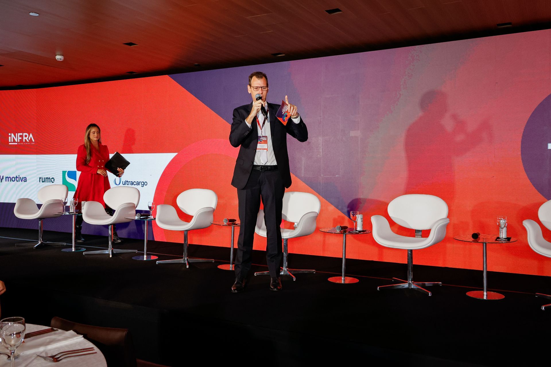 O modal ferroviário foi o grande destaque do Seminário “Logística Verde - para impulsionar um país mais competitivo”, realizado MoveInfra, Abdib e Poder360 na última quarta-feira (10.09) em Brasília. O evento reuniu autoridades públicas e especialistas para debater os desafios e as oportunidades na integração de soluções de transportes para uma economia de baixo carbono.                                                    No painel de abertura, o presidente da Abdib (Associação Brasileira da Infraestrutura e Indústrias de Base), Venilton Tadini, destacou que o orçamento federal precisa atender às necessidades do setor de infraestrutura e que as prioridades dos poderes executivo e legislativo sejam convergentes. “Um país, quando tem estratégias, tem clareza, só se torna eficaz se for refletida essas prioridades na sua estrutura de gasto. E o nosso orçamento federal é um bilhete”.                                                              Já a vice-presidente da Rumo, Natália Marcassa, adiantou que a empresa estuda uma parceria para fortalecer a logística interna do Porto de Santos. O objetivo é reduzir a dependência do transporte rodoviário, responsável hoje por 2/3 das cargas que chegam ao porto. “Muita gente não sabe, mas há mais de 100 km de ferrovia dentro do Porto de Santos. É uma rede enorme, que também precisa estar modernizada, para que a gente não fique travado na logística lá dentro do Porto de Santos”, ressaltou.                                                                          Nosso CEO, Ronei Glanzmann, durante o encerramento do evento, afirmou que o Brasil precisa de uma “virada” para as ferrovias, modal menos poluente e mais eficiente. Segundo o estudo Coalizão dos Transportes, organizado por mais de 50 entidades, o setor de transportes responde, atualmente, por 11% das emissões de carbono do Brasil, sendo que 93% disso é proveniente do modal rodoviário, que transporta mais de 70% das cargas do país. “Não faz sentido colocar soja, grão, minério em um caminhão e rodar cerca de 2 mil quilômetros até chegar no porto. O mundo desenvolvido não faz assim”.                                                                         Glanzmann lembrou ainda da importância de instrumentos variados de financiamento da infraestrutura e que taxar debêntures, como prevê a MP 1303/25, é um retrocesso para o país. “Nós não queremos voltar a um cenário de uma década atrás em que o BNDES era forçado a, sozinho, suportar todos esses investimentos”.                                                              Participaram do evento o secretário-executivo do Ministério dos Transportes, George Santoro; o chefe do Departamento de Transporte e Logística do BNDES, Tiago Toledo; o diretor de Desenvolvimento Produtivo, Inovação e Comércio Exterior do BNDES, José Luis Gordon; o diretor-geral da ANP (Agência Nacional do Petróleo, Gás Natural e Biocombustíveis), Artur Watt Neto; o presidente da CNT (Confederação Nacional do Transporte), Vander Costa; o diretor comercial da Edge, Guilherme Mattos; o secretário de Petróleo, Gás e Biocombustíveis, o Renato Dutra e o diretor da ANTT (Agência Nacional de Transportes Terrestres), Felipe Queiroz.                                                              O encontro teve a mediação dos jornalistas e editores seniores do Poder360 Guilherme Waltenberg e Mariana Haubert.